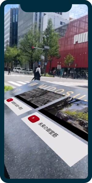 スマホカメラをモニュメントに向け、画面にモニュメントを表示します。