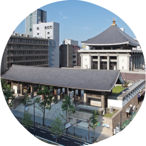 北御堂は、浄土真宗本願寺派(西本願寺)の大阪の別院、本願寺津村別院の通称で、「御堂筋」の由来になった寺院です。北御堂は大阪の歴史・政治・経済・文化に深く関わりがあり、施設内には大阪と本願寺の歴史を学ぶミュージアムが併設されています。