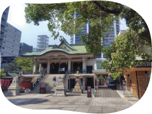 御堂筋から南地中筋を東に進んですぐ。江戸時代からある境内には、石畳の参道や横丁沿いに老舗の割烹やパーなどが軒を連ねます。夜は打ち水に灯りが映え、なにわ情緒たっぷり。お不動さんに水を掛けてみよう。